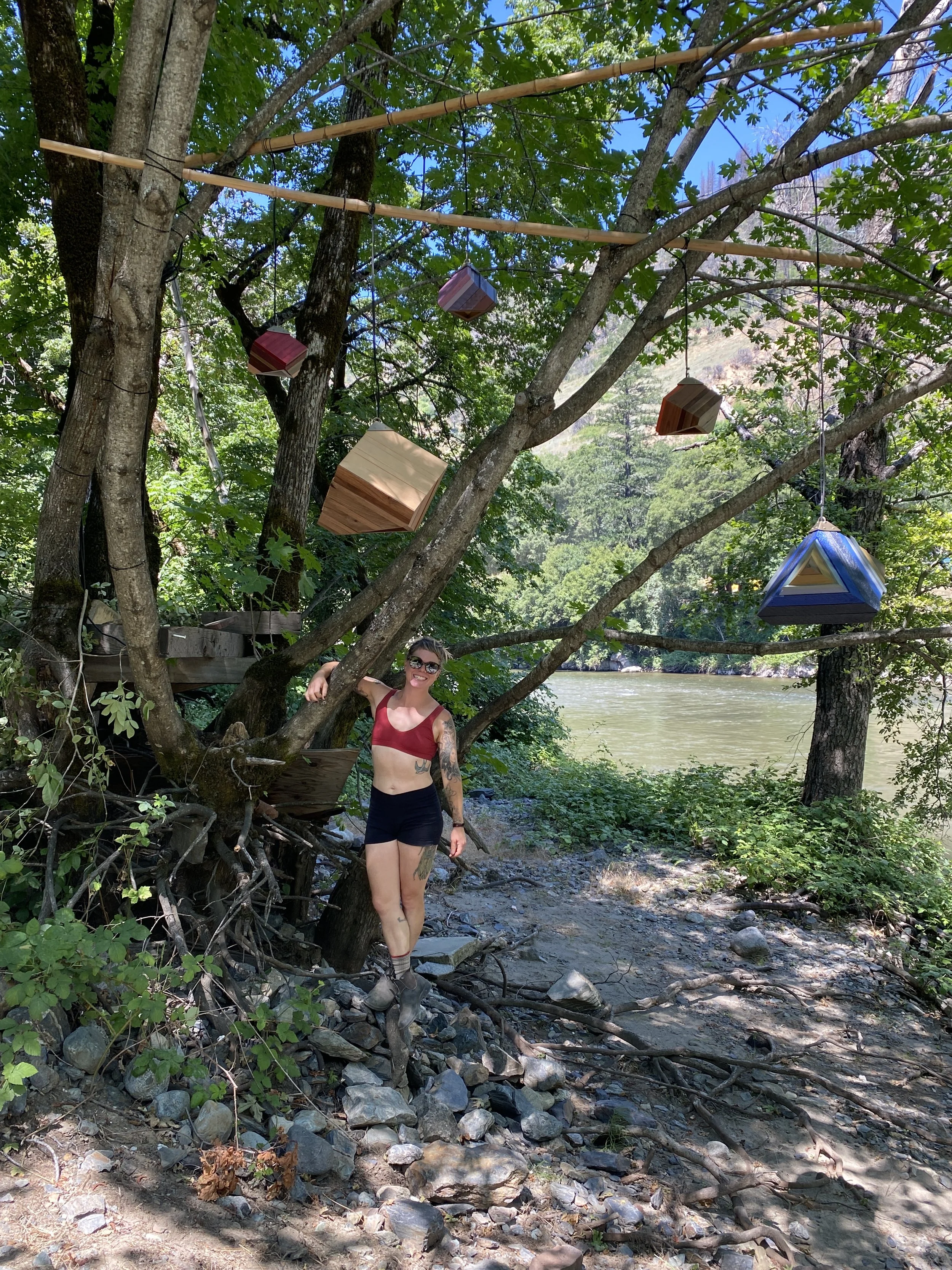Made in collaboration over a weekend with the client teaching her layout, staining, cutting, and finishing skills.